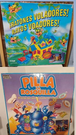 2 JUEGOS DE MESA VINTAGE ORIGINAL AÑOS 90 , NUEVOS SIN USO A ESTRENAR. SIN ABRIR. LOTE FORMADO POR: juego de mesa nuevo a estrenar original años 90 PILLA LA ROSQUILLA Parker . JUEGO DE MESA VINTAGE ORIGINAL AÑOS 90 . DISEÑADO POR LA MITICA MARCA DE JUEGOS " PARKER " . " PILLA LA ROSQUILLA " - NUEVO A ESTRENAR . * Antiguo juego de mesa original años 90 nuevo a estrenar Ratones Voladores TYCO . NUEVO SIN USO PROCEDENTE DE ANTIGUO ALMACEN DE JUGUETES ABANDONADO Y CERRADO DURANTE MAS DE 30 AÑOS . * No muñeco muñecos figura figuras juguete juguetes retro egb vintage juegos de mesa