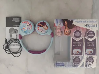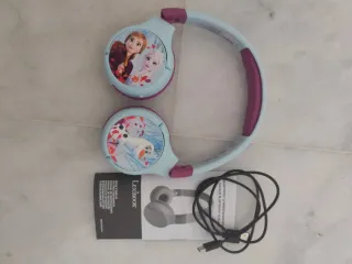 Auriculares infantiles con diseño de Frozen. - Decorados con los personajes de Frozen. - Incluyen cable de carga USB. - Manual de instrucciones en varios idiomas.