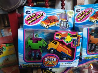 OCASION COLECCIONISTAS ! 2 BLISTERS - CAJAS CON JUGUETE ROBTOS TRANSFORMERS BOOTLEG AÑOS 80 90 NUEVOS A ESTRENAR SIN ABRIR NUNCA JUGADOS " SUPER ROAD BOT " + COCHE GRAN TAMAÑO " FLYING EAGLE - RACING CAR " A PILAS . OJO NUEVO SIN USO PERO CAJA EN ESTADO REGULAR . TAL Y COMO SE APRECIA EN FOTOS.
