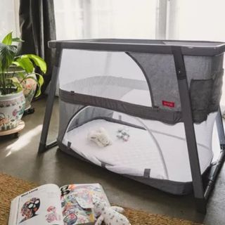 Cuna moisés para bebé en color gris. Perfecta para las primeras etapas del bebé. - Estructura metálica. - Laterales de malla transpirable. - Incluye cesta inferior de almacenamiento. - Ruedas para facilitar el movimiento.