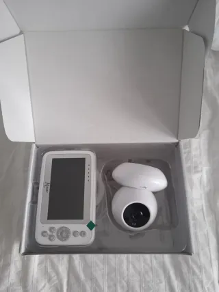 Sistema de videovigilancia para bebés de la marca Keokids. Incluye monitor y cámara. - Monitor con pantalla. - Cámara con lente. - Diseño blanco.