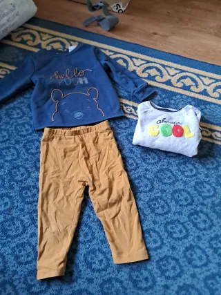 vaqueros, pantalones de chandal, petos vaqueros, bodies, chaquetas, sudaderas, 1 chaleco, 1 albornoz, cangrejeras 22 y botas de agua 21, conjuntos chandal, camisas, camisetas, y pantalones cortos, baberos
