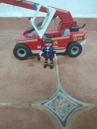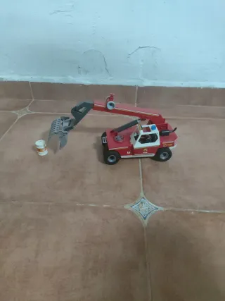 Camión elevador de bomberos de Playmobil City Action. Incluye accesorios. - Camión rojo y blanco. - Brazo elevador con pinza. - Accesorios como un bidón.