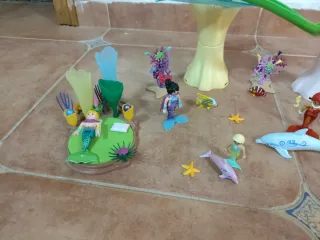 Conjunto de Playmobil Cala de Sirenas con una cúpula. - Incluye figuras de sirenas. - Elementos decorativos marinos. - Piezas de construcción para la cala. - Una cúpula que se puede iluminar