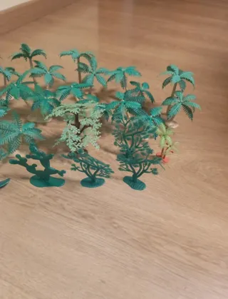 Set de figuras de plantas de plástico para crear escenarios. - Incluye varias palmeras y cactus. - Color verde.
