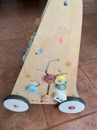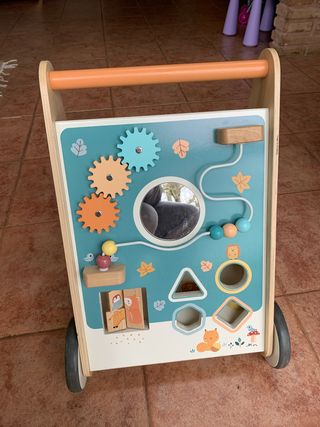 Muy poco uso. Está nuevo. No se hacen envíos. Precio original 65€. Este andador de madera es perfecto para los primeros pasos de los más pequeños. Su diseño es atractivo y educativo. - Fabricado en madera. - Incluye actividades como engranajes, espejo y encajables. - Mango de madera para un agarre cómodo.