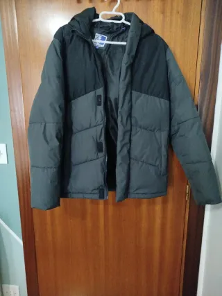 Chaqueta de invierno para niño, ideal para mantener el calor en los días fríos. - Diseño bicolor en gris y negro. - Capucha integrada. - Cierre de cremallera frontal.