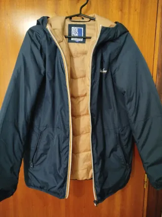 Chaqueta de niño de la marca Jack & Jones. - Talla 164. - Color azul marino con interior camel. - Capucha. - Cierre de cremallera. - Bolsillos laterales con cremallera.