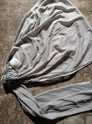 Bandolera de porteo de tejido ligero y transpirable. - Color gris. - Tejido con pequeños puntos perforados. - Anillas para ajuste.