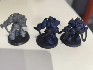 Lote de 3 miniaturas de Marines Primaris en armadura gravis con lanzallamas.