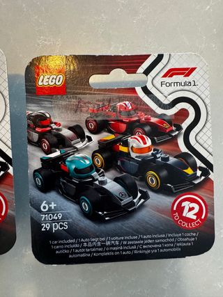 Set de construcción LEGO Formula 1. Disponible FERRARI, WILLIAMS, ASTON M. 5€/ud - Incluye 1 coche. - 29 piezas en total. - Recomendado para mayores de 6 años. - Coleccionable (12 modelos para coleccionar).