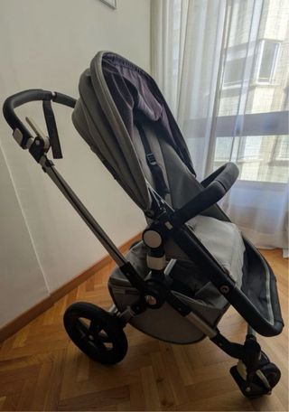 Cochecito Bugaboo en buen estado, ideal para paseos. - Chasis resistente. - Asiento acolchado. - Capota ajustable. - Ruedas todoterreno. - Capazo y silla - Funda impermeable para la lluvia