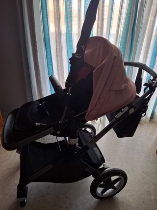 Capota Rosa cochecito bugaboo. Está usada pero bien conservada. Incluye funda para la lluvia (plástico bugaboo original) además tengo en el perfil cubrepies en gris y capazo.