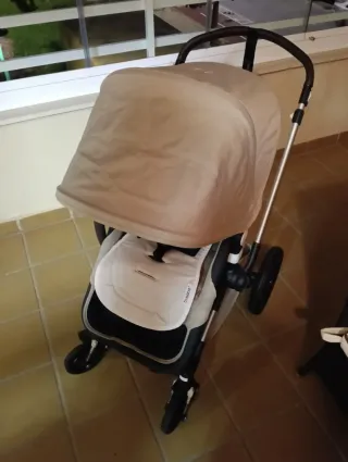 Bugaboo Cameleon 3 en color beige, en buen estado. - Chasis negro. - Capazo y silla. - Ruedas todoterreno. -Saco de invierno beige y saco de verano blanco. -Funda del cochecito. -Capota beige.
