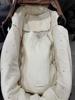 Funda interior para capazo de Bugaboo Dragonfly. Con un diseño de hojas pequeñas en color crudo. - Tejido suave y transpirable. - Incluye cojín. - Cierre de cremallera.