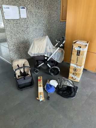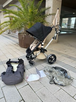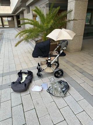 Bugaboo bee 5 en muy buenas condiciones, aunque se nota el desgaste en las fundas del manillar ¡pero estás de suerte!, en este modelo las fundas se pueden intercambiar en tan solo un click y todo lo demás está perfecto. Es un carrito de alta gama, muy ágil, dinámico y con una suspensión increíble. Perfecto para quienes buscan calidad y comodidad. Además, viene también con una capota de lluvia original de bugaboo. Sólo entrega en mano.