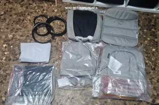 Pack de accesorios para todos Bugaboo Fox en color Mineral. - capota extensible. - funda capazo y cubrepies . - textil de silla. - llantas negras para las ruedas - cesta inferior - plástico de lluvia Todo el pack está nuevo sin estrenar