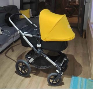 Carro de bebé Bugaboo Fox. En perfecto estado. Incluye: -capazo para recién nacido -silla de paseo -capota amarilla -plástico protector de lluvia -patín original para hermano mayor. Ruedas y chasis en magnificas condiciones. Los manillares llevan fundas totalmente nuevas. Ver y recoger en Olesa de Montserrat.