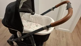 Cochecito de bebé marca Uppababy, modelo Cruz, ideal para paseos. - Capazo con dos fundas si se quieren y también el protector. - Manillar con funda de cuero. - Sillita a partir de los 6 meses. - Tengo las dos fundas de plástico para la llubia (capazo y sillita). - Color negro. - El manillar es ajustable en diferentes alturas (va súper bien esto). - Una de las ruedas está un poco desgastada.