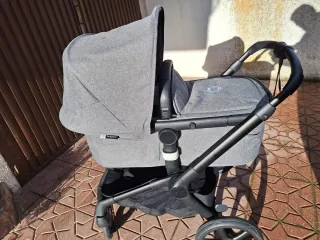 Cochecito Bugaboo Fox 5 en color gris, en perfecto estado. - Chasis negro. - Capazo y silla con fundas originales - Capota extensible con protección solar yventilación. - Ruedas todoterreno. - Plástico lluvia - Cubre capazo blanco de pipa y limon - Carro con muy poco uso y siempre se ha usado con funda protectora. No tiene manchas ni desperfectos graves ( solo un pequeño arañazo en el chasis como se puede apreciar en la foto)
