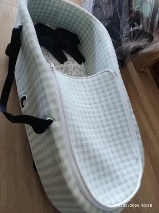 Funda para capazo de la marca Walking Mum. Incluye dos piezas. - Modelo universal. - Tejido de algodón. - Diseño acolchado. Diseño de corazones Color marfil Es el cubrecapazo y la sabana bajera Cualquier duda preguntar