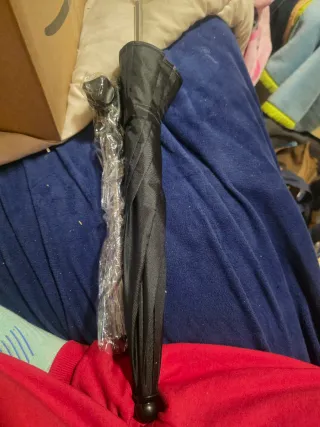 Paraguas diseñado para cochecitos de bebé. Protege del sol y la lluvia. - Color negro. - Varilla metálica. - Funda protectora de plástico.
