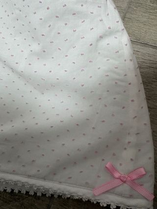 Funda universal para capazo de bebé, con un bonito estampado de topos rosas sobre fondo blanco. - Tejido suave y acolchado. - Cierre con lazada rosa. - Ribete decorativo.