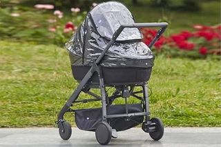 Protector impermeable para cochecito Chicco. Diseñado para adaptarse a la mayoría de los modelos. - Material transparente y resistente. - Cierre de cremallera para fácil acceso. - Protege contra lluvia y viento.