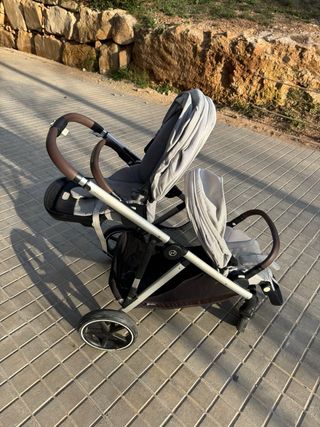 Lo llevo usando 1,5 años, lo compré en una tienda. Una carriola para gemelos o niños de edades similares. Incluye dos asientos y una cesta estándar (no aparece en la foto). La carriola está en buen estado. Las fundas son extraíbles y lavables. Es más fácil de usar que una carriola con dos asientos uno al lado del otro. No es mucho más grande que una carriola Cybex individual. Cochecito Cybex Gazelle S, ideal para gemelos o hermanos con poca diferencia de edad. Su diseño permite configurar los asientos de diversas maneras. - Estructura robusta y ligera. - Asientos reclinables y reversibles. - Capota solar extensible. - Amplia cest
