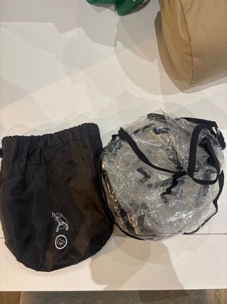 Funda de lluvia para el cochecito Yoyo. - Fabricada en plástico transparente. - Incluye bolsa de almacenamiento negra.
