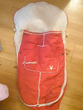 Funda universal para carrito de bebé, ideal para mantener a tu pequeño abrigado. - Diseño acolchado y suave. - Color coral. - Marca: Wallaboo.