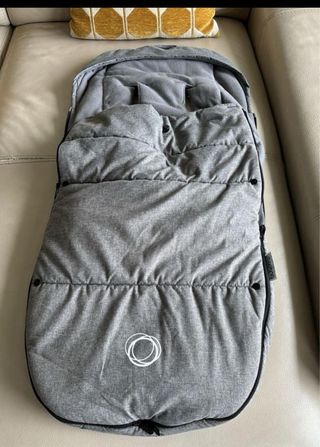 Funda acolchada de invierno para cochecito Bugaboo. Mantiene al bebé abrigado y cómodo. - Color gris claro. - Interior suave y cálido. - Cierre de cremallera.