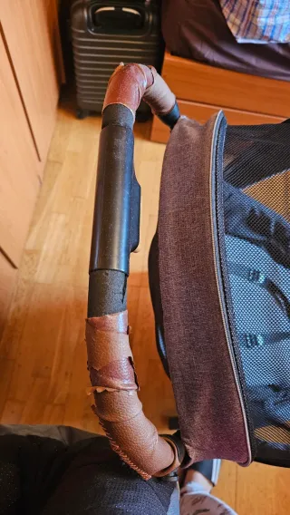 - Manillar con funda de cuero desgastada. - Estructura negra. - Tejido gris y malla negra. - mas funda de frio