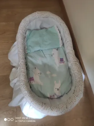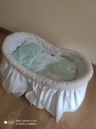 *USADO UNA SOLA VEZ* Funda para capazo de la marca Walking Mum, modelo Mimosa. Protege el capazo con un diseño encantador. - Estampado floral en tonos verdes sobre fondo beige. - Tejido suave y transpirable. - Ajuste con gomas para una fácil colocación. - NO incluye la sábana bajera de la imagen, es solamente la parte lateral. - Lo usé un único día porque me lo regalaron pero mi hijo nació en Junio y con el calor de verano no quise ponerle más capas al capazo.