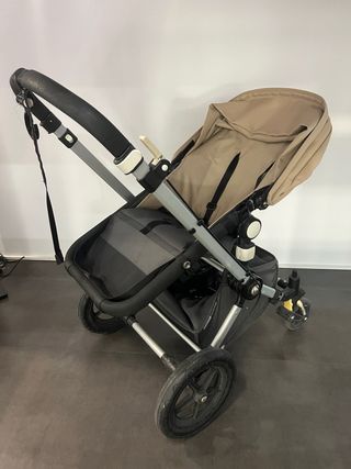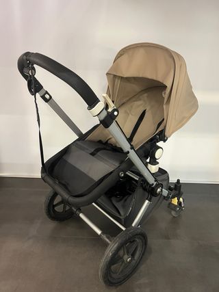Silla de paseo Bugaboo Cameleon en color beige y negro. Ideal para el día a día. - Capazo, silla, capota y funda de lluvia. - Ruedas todoterreno. - Accesorio para segundo niño. - Manillar ajustable.