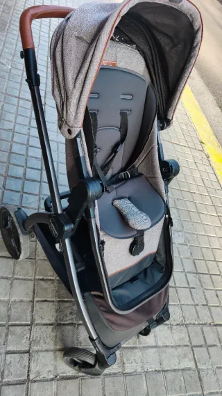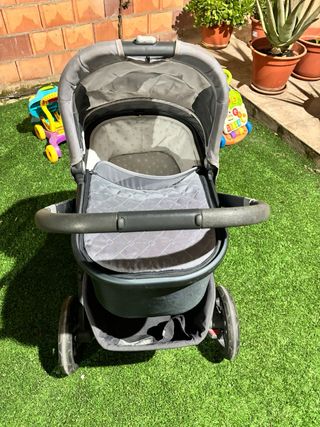 Carro de bebé de la marca Jane en color gris. Diseño moderno y funcional. - Capota con visera. - Barra de seguridad frontal. - Asiento acolchado. Incluye plastico para la lluvia (nunca usado) y funda para la silla.