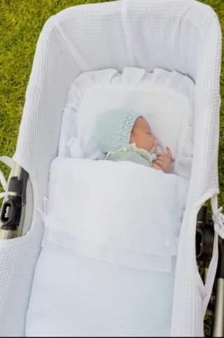 Funda para capazo de bebé. - Color blanco. - Diseño con festones. - Tejido con relieve.