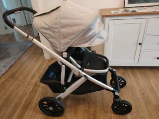 Cochecito de bebé. 2 en 1, se puede configurar como 3 en 1. + Silla de coche para bebé. + Nido para dormir de bebés recién nacidos. + Asiento para sentarse y dormir para niños grandes. + Protección solar separada en cada asiento. + cubrepiernas. + Funda protectora contra la lluvia con apertura que se puede abrir para bebés. + Bolsa de bebé. + Lugar de almacenamiento con cremallera. + Colchón para silla de bebé. Todo tiene muy poco uso y está como nuevo. Marca = Nurse by Jane.