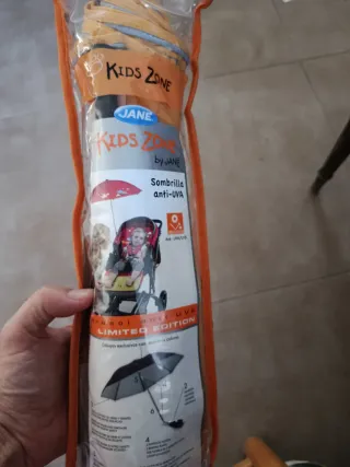 Sombrilla para cochecito de bebé de la línea Kids Zone de Jane. Protege del sol con filtro anti-UVA. - Diseño Limited Edition con dibujos exclusivos. - Protección anti-UVA y UVB. - Incluye funda. - Estructura flexible y resistente.