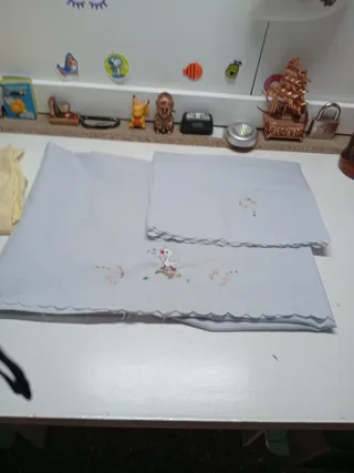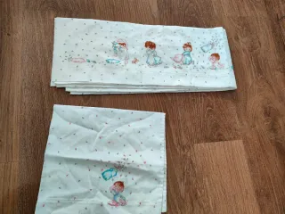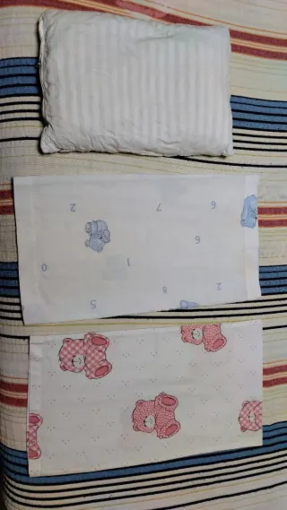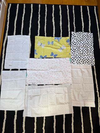 Lote de fundas de almohada con diferentes diseños. Junto con una sabana bajera ajustable Son de buena calidad y muy bien conservados.