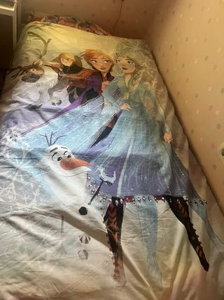 Funda nórdica y funda de almohada con diseño de Frozen. La funda de almohada esta sin estrenar la funda nordica tiene poco uso. Es reversible - Diseño de personajes de Frozen. - Incluye funda de almohada a juego.