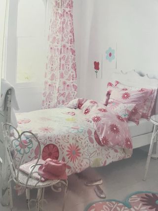 Juego de funda nórdica infantil de la marca George Home con un alegre estampado floral. - Diseño: Happy Floral. - Tamaño: Toddler (120cm x 150cm). - Incluye funda de almohada a juego. - Fácil cuidado. - Material: Mezcla de algodón.