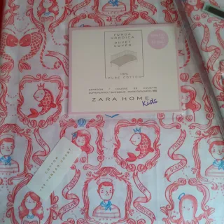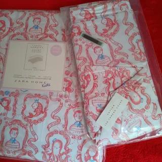 Conjunto de funda nórdica y funda de almohada de Zara Home Kids con un divertido estampado. - Diseño con personajes marinos y náuticos. - Material: 100% algodón puro. - Medidas funda nórdica: 100x120 cm (39.5x47 in). - Hilo: 150 Thread Count.