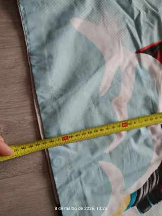 Juego de cama con estampado de la Patrulla Canina. Medidas en las fotos. Funda almohada 45x75 Funda nórdica aprox (se ve en foto) 133x193 - Incluye funda nórdica y funda de almohada. - Diseño de Adventure City Heroes con los personajes. - Fondo azul claro con nubes.