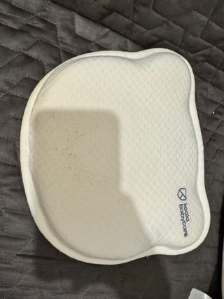 Almohada para bebé de la marca Koala Babycare, diseñada para ofrecer comodidad y contra plagiocefalia - Color blanco. - Diseño acolchado. - Etiqueta de la marca visible. -Con dos fundas blancas muy poco uso , casi nueva