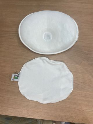 Almohada para bebés diseñada para prevenir y corregir la plagiocefalia. - Material suave y transpirable. - Forma ergonómica para la cabeza del bebé. - Color rosa -Dos fundas 1 nueva y 1 usada
