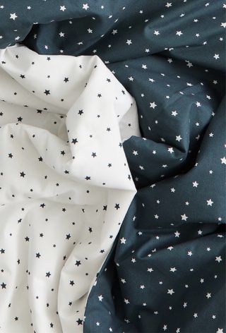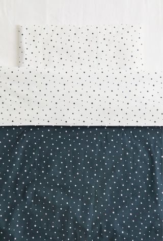 Conjunto de ropa de cama para cama de 90 cm con un divertido estampado de estrellas. Ideal para habitaciones infantiles. - Diseño de estrellas en azul marino sobre fondo blanco. - Tejido suave y agradable al tacto. - Producto completamente nuevo a estrenar, con precinto. incluye bajera, funda nórdica y almohada.