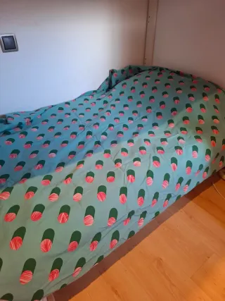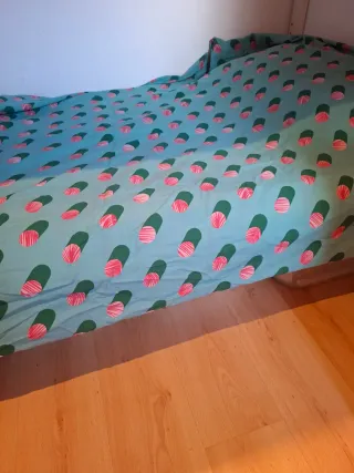 Se venden dos fundas nórdicas individuales con un diseño divertido y colorido. 1 funda=7€. Las 2 fundas =12€ - Fundas nórdicas de tamaño individual. - Diseño con estampado de círculos en tonos verdes y rosados. - fundas de almohada