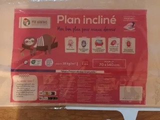 Almohada inclinada para bebés, también conocida como cuña. Se pone debajo el colchón de la cuna para favorecer la respiración del bebé cuando está resfriado o si tiene mucho reflujo. - Funda extraíble y lavable. - Material transpirable. - Medidas: 70 x 140 cm.