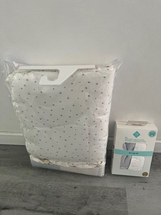 Minicuna, colchón, funda protectora y almohada